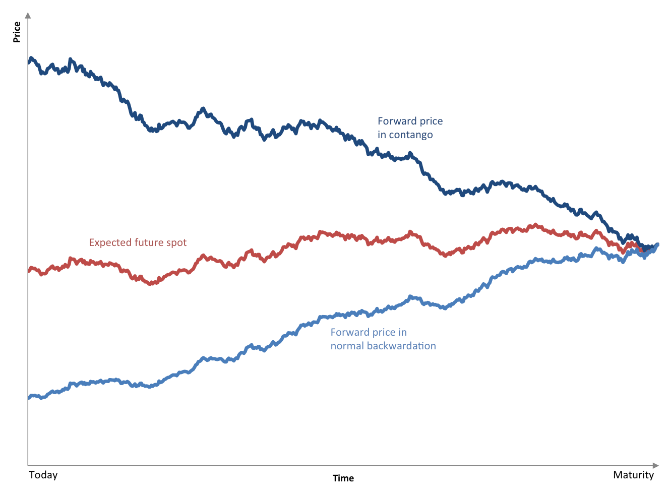 Maar er kan nog iets anders meespelen, namelijk de verwachting van de markt over de toekomstige spotprijs in het geval dat arbitrage niet (goed) mogelijk is. Bijvoorbeeld bij bederfelijke goederen.