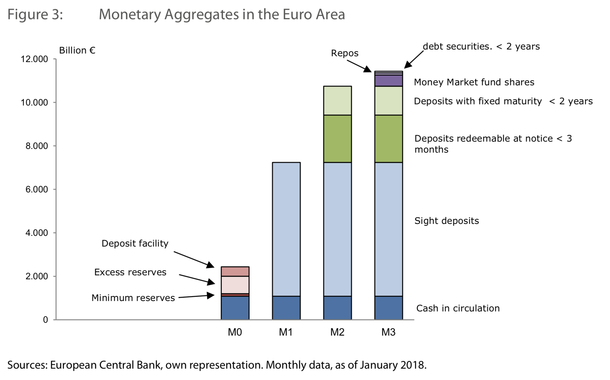 M0 is the sum of all notes and coins brought into circulation by the aforementioned central banks. In some countries people refer to M0 as monetary base, or narrow money. If you add all traveler’s checks, all checkable deposits, and all funds held in demand deposit accounts in commercial banks you’ll get M1.